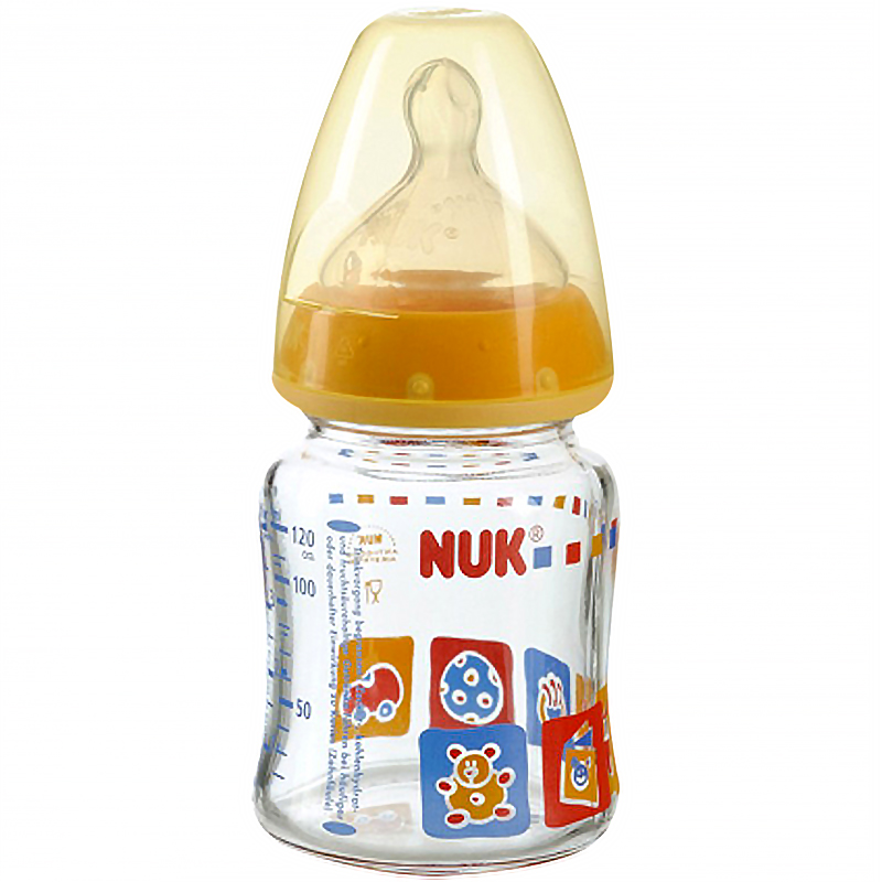 Bình sữa thủy tinh Nuk cổ rộng 120ml với núm ti bằng silicone siêu mềm