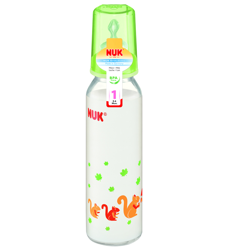 Bình sữa nuk cổ hẹp bằng thuỷ tinh, núm ti silicone dung tích 230ml dành cho bé từ 3 tháng trở lên. Bình sữa Nuk giúp trẻ không bị nuốt phải hơi, tránh đau bụng và giảm tình trạng bé quấy khóc. Bình sữa của thương hiệu Nuk được lòng rất nhiều mẹ trên thế giới và cả ở Việt Nam tin dùng cho con mình.