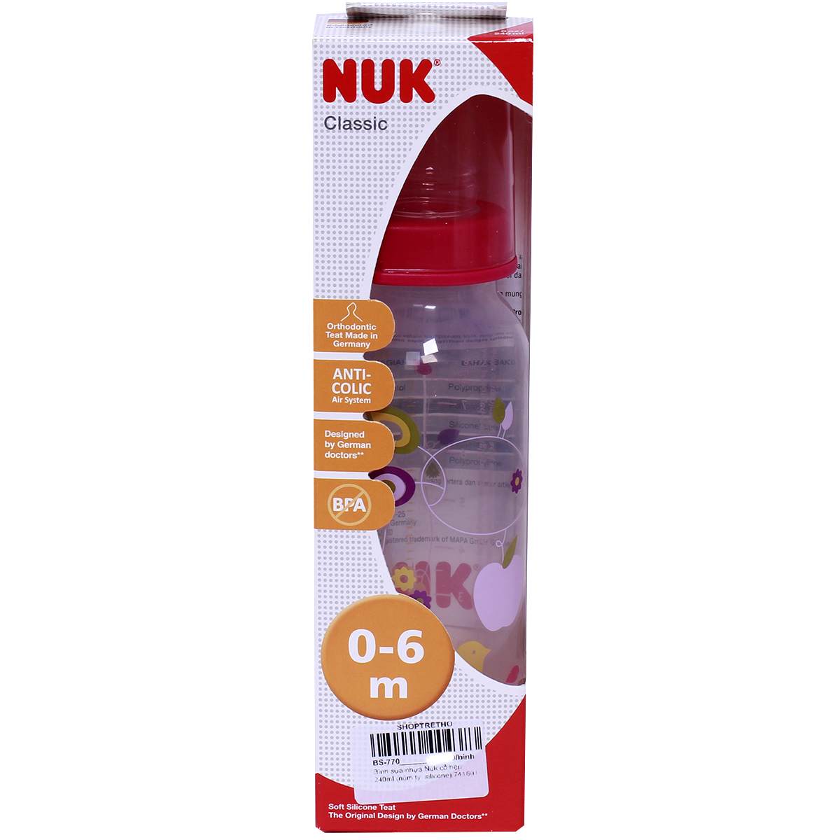 Bình sữa Nuk 741601 với thiết kế cổ điển của thương hiệu bình sữa hàng đầu tại Đức