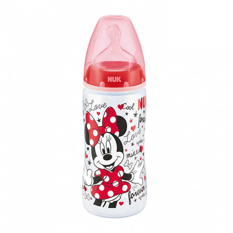 Bình sữa cổ rộng Nuk Mickey 300ml với núm ty silicone đi kèm