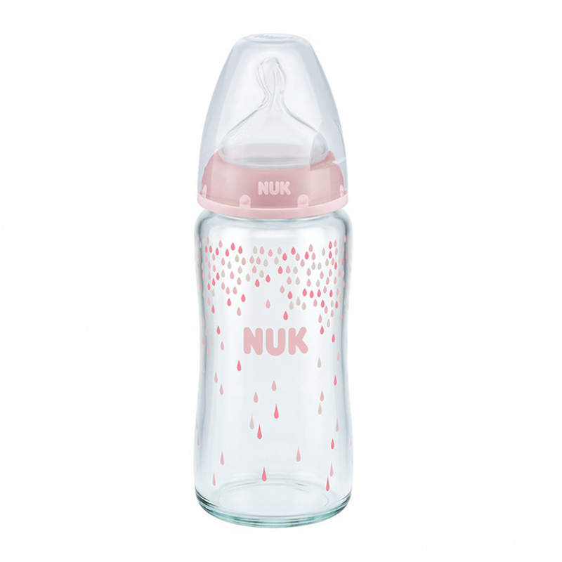 Bình sữa thủy tinh Nuk 240ml với trọng lượng nhẹ, khó nứt vỡ, chịu nhiệt cao