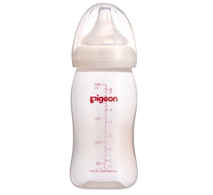 Bình sữa cổ rộng của thương hiệu Pigeon với vạch kia rõ ràng