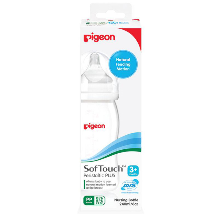 Bình sữa Pigeon PP Plus (núm ti silicone) là dòng bình sữa cao cấp "Peristaltic PLUS" với núm ti nhu động dành cho bé từ 3 tháng tuổi giúp kích thích cử động mút tự nhiên của bé. Thiết kế bình cổ rộng dễ dàng vệ sinh, thân bình sữa có vạch đo thể tích rõ ràng, giúp thuận tiện khi pha sữa.