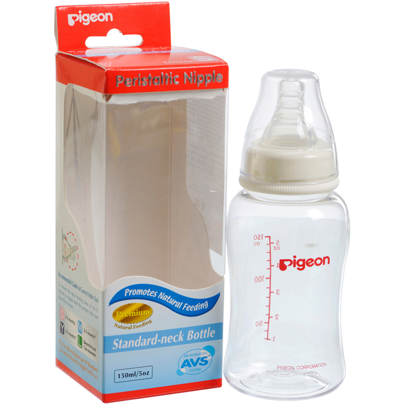 Bình sữa Pigeon Streamline 150ml cổ tiêu chuẩn sử dụng chất liệu nhựa an toàn và thiết kế núm ti AVS độc quyền của Pigeon với hệ thống thông khí đặc biệt, giúp trẻ không bị đầy hơi và hạn chế sặc sữa khi bú.
