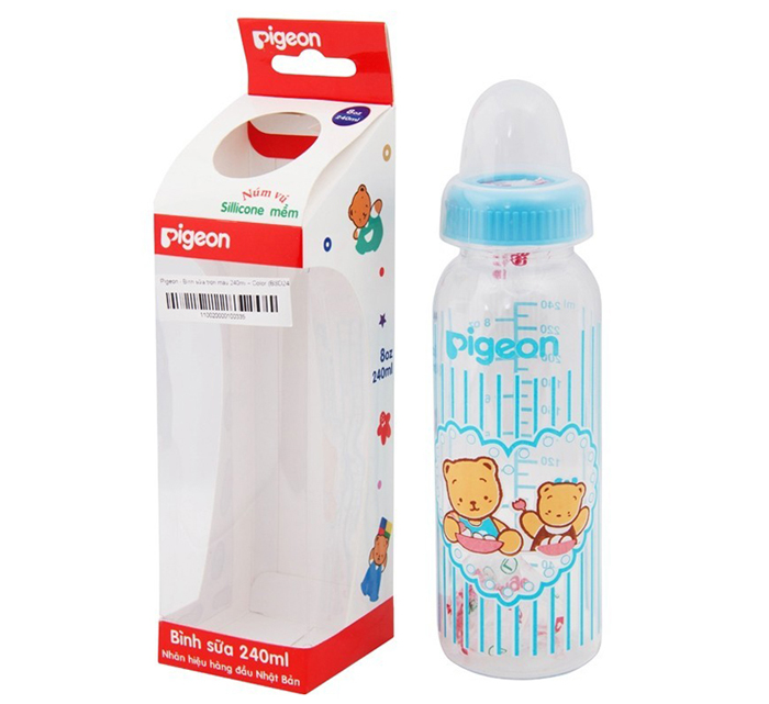 Bình sữa Pigeon 240ml cổ thường thân bình trong suốt