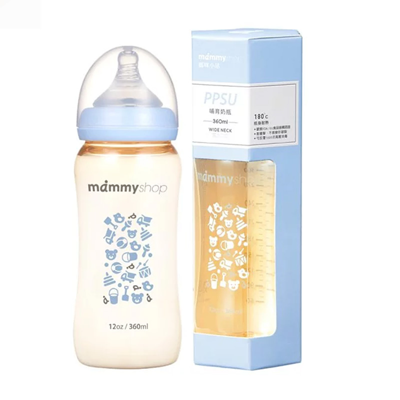 Bình sữa PPSU cổ rộng Mammy 360ml màu xanh
