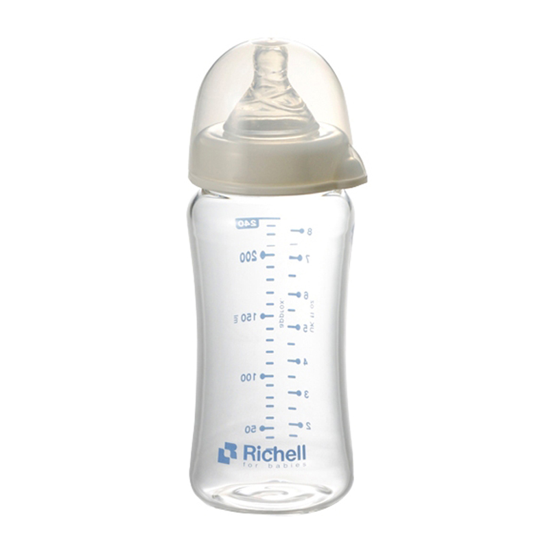 Bình thủy tinh Richell cổ rộng giúp cho việc pha sữa và vệ sinh được dễ dàng