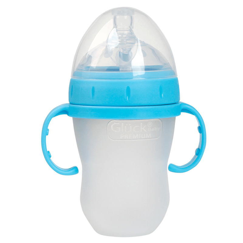 Bình sữa silicone Gluck GB240 240ml màu xanh - Chất liệu silicon cao cấp, chịu nhiệt tốt