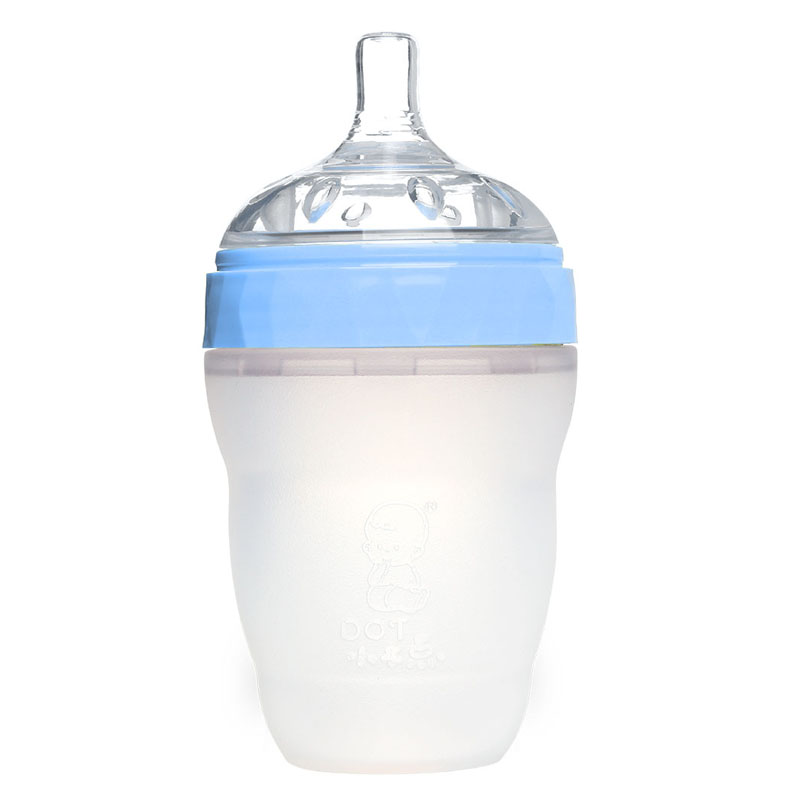 Bình sữa silicone kim cương Gluck (240ml) với thân bình và núm ti được làm từ chất liệu silicone cao cấp chuyên dùng trong y khoa, cực kì mềm mịn, giống như da mẹ khiến bé có cảm giác gần gũi khi cầm nắm. Hơn nữa, bầu núm ti rộng, mềm, thiết kế mô phỏng theo ty mẹ tự nhiên, với vòm núm ti to, rộng, mềm mại giống hệt như ty mẹ. Đặc biệt, kết cấu của núm ty có hệ thống khí - lỗ thông hơi để ngăn chặn bong bóng khí xuất hiện trong quá trình bú sữa, khiến bé không bị sặc, đầy hơi hay đau bụng. Mẹ có thể hoàn toàn yên tâm về sự an toàn của bé.