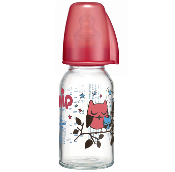 Bình sữa thủy tinh Nip dung tích 125ml với dòng chày phù hợp cho bé từ sơ sinh