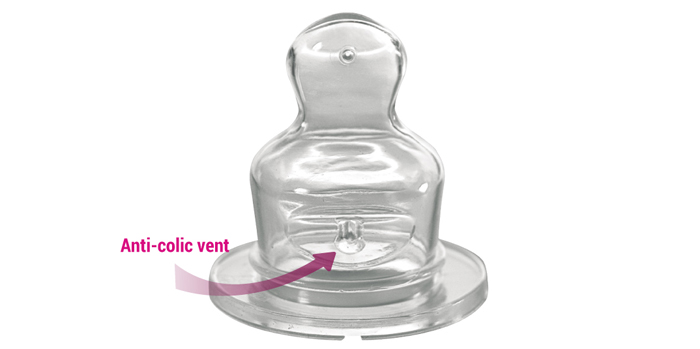 - Lỗ thông khí (anti-colic vent) giúp lưu thông không khí, điều chỉnh dòng chảy, giúp bé không nuốt phải không khí trong quá trình bú mẹ, hiệu quả trong việc ngăn ngừa các triệu chứng đầy hơi, khó tiêu, chống sặc và giảm thiểu nguy cơ đau bụng colic (đau bụng do đầy hơi) của bé sơ sinh.