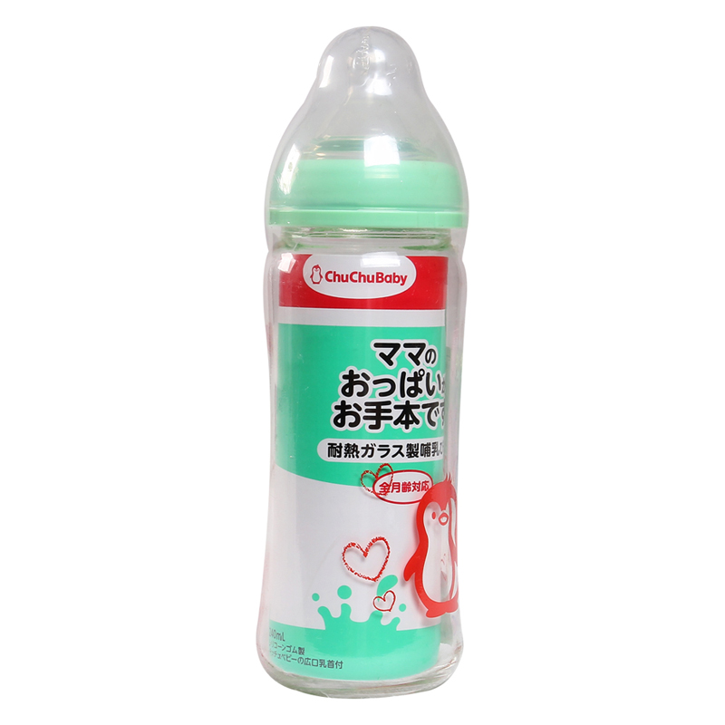 Bình sữa bằng thủy tinh Chuchu thủy tinh cổ rộng giúp mẹ dễ dàng vệ sinh và pha sữa