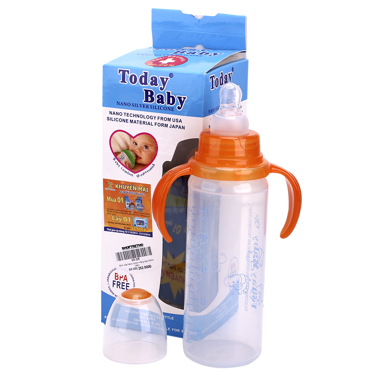 Bình sữa Today Baby silicone tráng bạc 240ml (dẹt)