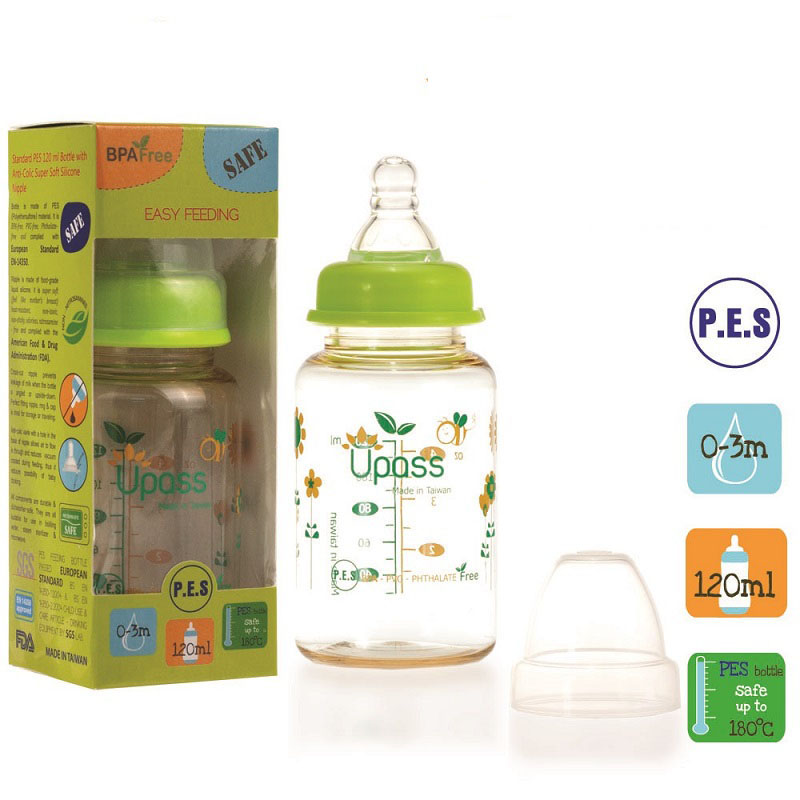 bình sữa là vật mà mẹ cần chuẩn bị cho bé khi sắp chào đời bởi khi vừa sinh ra, mẹ chưa có sữa ngay thì phải cho bé sử dụng sữa công thức thay thế. Hoặc khi sữa mẹ không đủ, bé cũng cần ăn thêm sữa ngoài và bình sữa PES cổ thường UPASS 120ml không BPA, có núm ti silicon siêu mềm chống sặc UPASS rất phù hợp và cần thiết cho bé ti sữa dễ dàng.