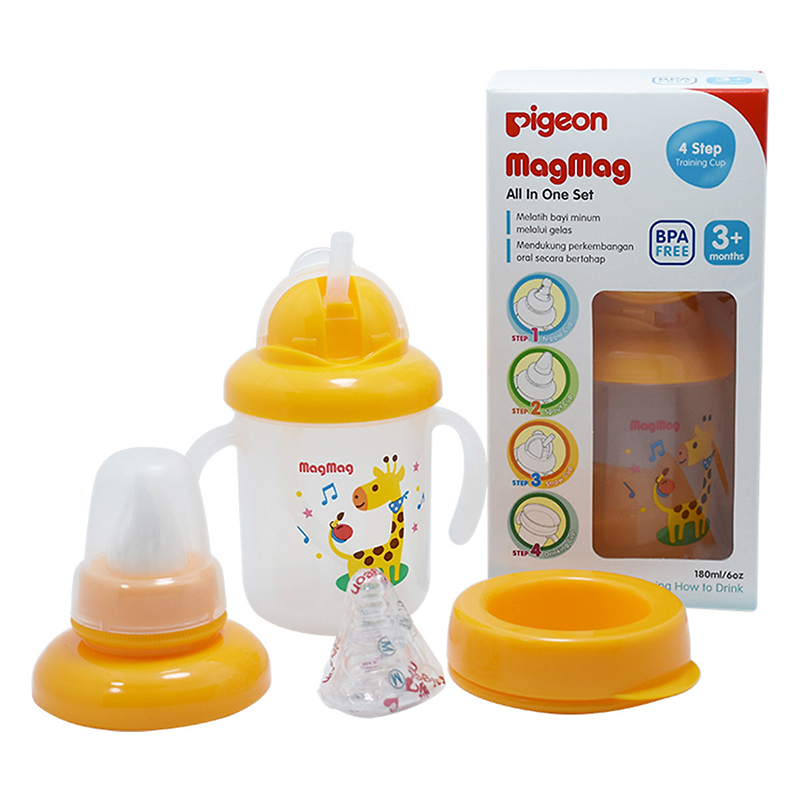 Bình tập uống MagMag 4 chức năng Pigeon giúp trẻ dần dần sử dụng bình một cách độc lập, khởi đầu cho trẻ từ 3 tháng đến 3 - 4 tuổi với từng kiểu bình phù hợp với từng giai đoạn phát triển của trẻ. Bộ ly đa năng được thiết kế đặc biệt với các kiểu nắp vặn khác nhau, dễ dàng và tiện lợi cho bé cầm, nắm và học cách uống nước một cách tự nhiên.