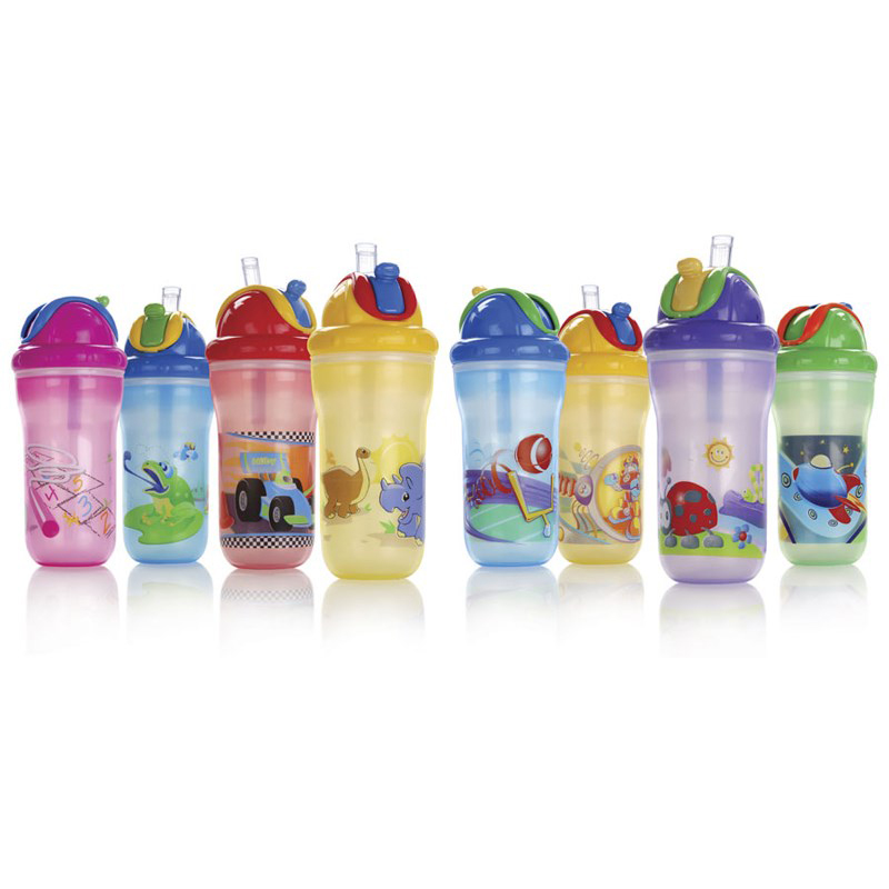Bình uống nước Nuby 838 được thiết kế 2 lớp giúp ủ ấm hoặc ủ lạnh sữa, nước, nước hoa quả… đồng thời kết cấu 2 lớp còn có tác dụng cách nhiệt. Màu sắc đa dạng với hình ảnh vui nhộn tạo cảm giác vui mắt khiến bé thích thú hơn khi uống nước. Chất liệu ống hút silicone mềm mại với thiết kế nắp đậy đẩy ra đẩy vào tạo sự tiện dụng cho bé và mẹ.