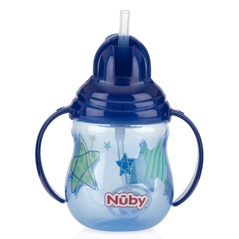 Bình uống nước tay cầm Nuby 270ml không chỉ nổi bật với chất liệu cao cấp, an toàn tuyệt đối cho bé mà còn bởi thiết kế tay cầm tiện lợi nên giúp bé có thể cầm uống ở mọi vị trí. Đặc biệt, bình có thiết kế nắp đậy chống đổ, tràn kết hợp ống hút bằng silicone siêu mềm.