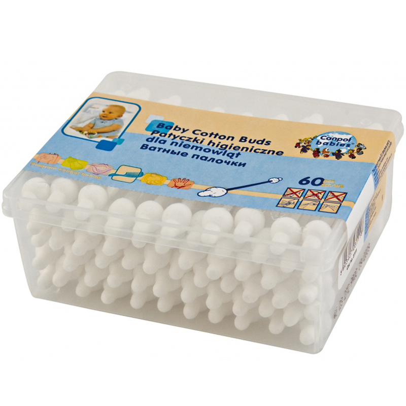 Bông ngoáy tai Canpol 3/111 sẽ giúp mẹ vệ sinh tai cho bé thật kỹ và an toàn. Đầu bông được làm hoàn toàn từ cotton tự nhiên được thiết kế vừa vặn với lỗ tai bé, giúp mẹ dễ dàng làm sạch tai con mà không cần phải canh chừng độ sâu đụng vào màng nhĩ mỏng manh của trẻ. Mỗi túi đóng gói 60 chiếc.