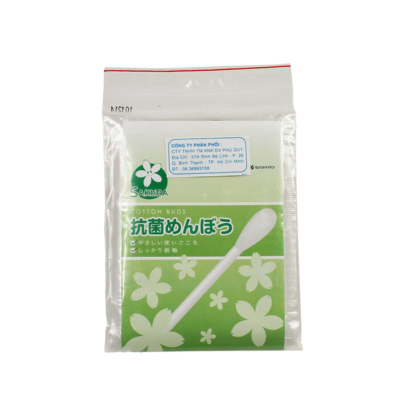 Tăm bông Sakura thân giấy kháng khuẩn được sản xuất trên dây chuyền công nghệ Nhật Bản an toàn, an tâm, dễ dàng sử dụng.