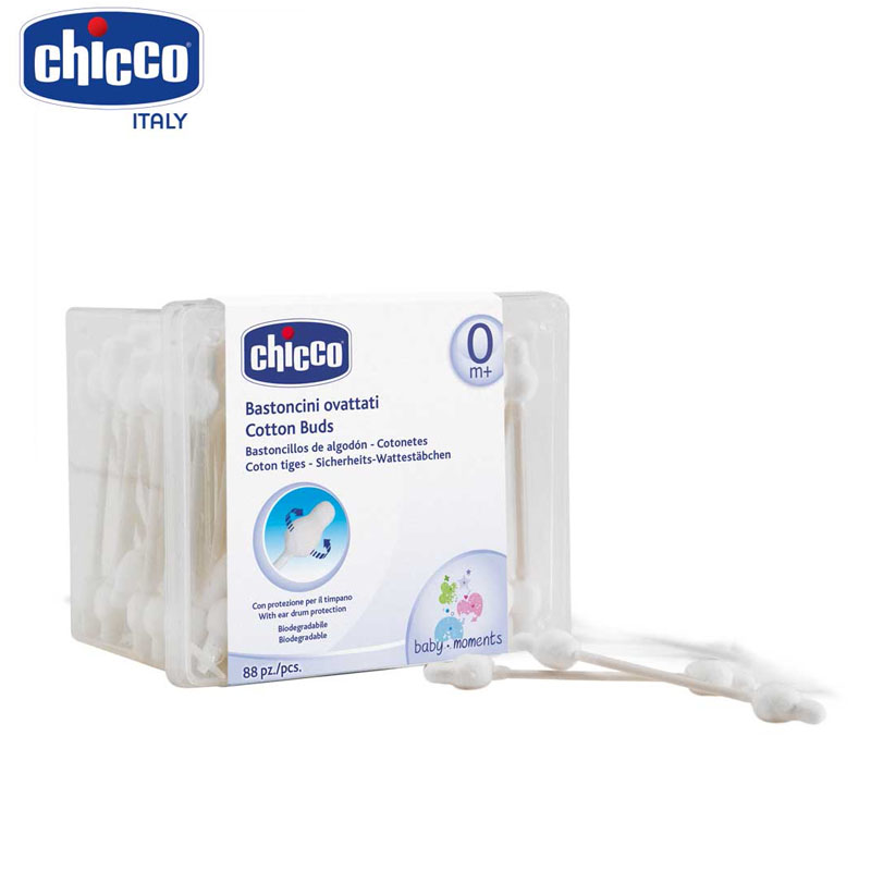 - Bông tăm có đầu bảo vệ Chicco dành cho trẻ từ sơ sinh trở lên.