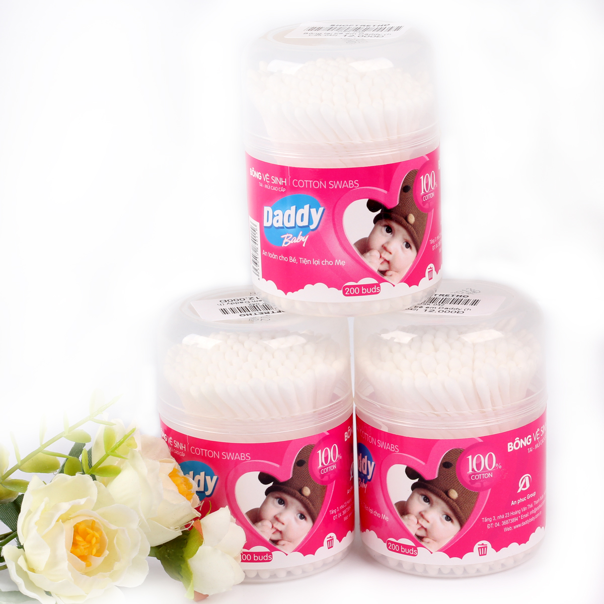 Bông tăm trẻ em cao cấp Daddy Baby Việt Nam 1 hộp gồm có 200 chiếc