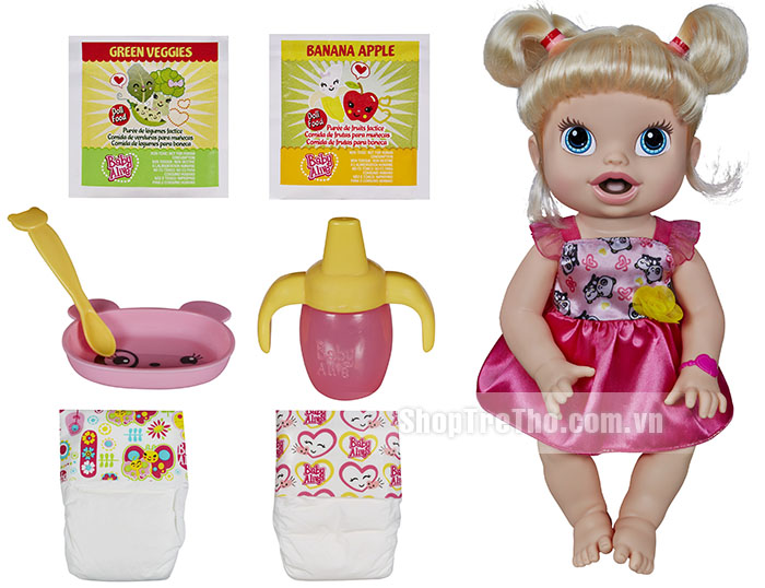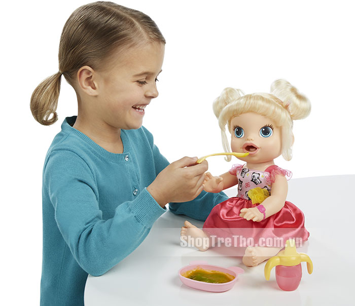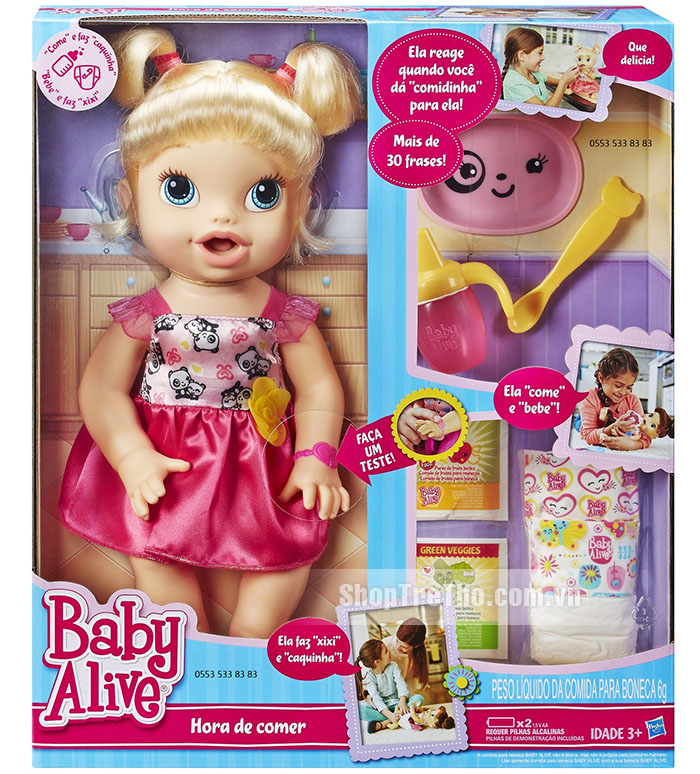 Búp bê Baby Alive bé yêu tập ăn - A70221 trong những đồ chơi được yêu thích tại Mỹ. Thêm nữa, búp bê baby còn có thể ăn bột, uống nước và đi vệ sinh như em bé thật giúp bé rèn luyện kĩ năng trong cuộc sống, biết cách yêu thương và chăm sóc những người xung quanh.