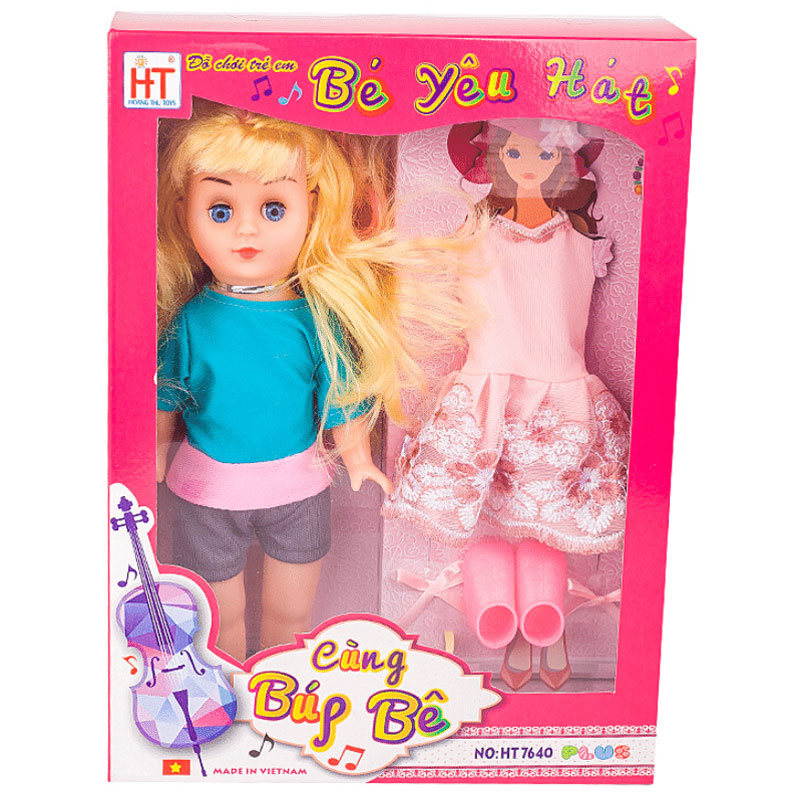 Búp bê hát nhạc có thay áo HT7640PLUS size nhỏ mang phong cách trẻ trung năng động, đồ của búp bê từ loại vải mềm rất thời trang. Thiết kế tỉ mỉ từ tóc, mắt đến chân,chất liệu nhựa cao cấp mềm mại an toàn cho bé khi chơi.