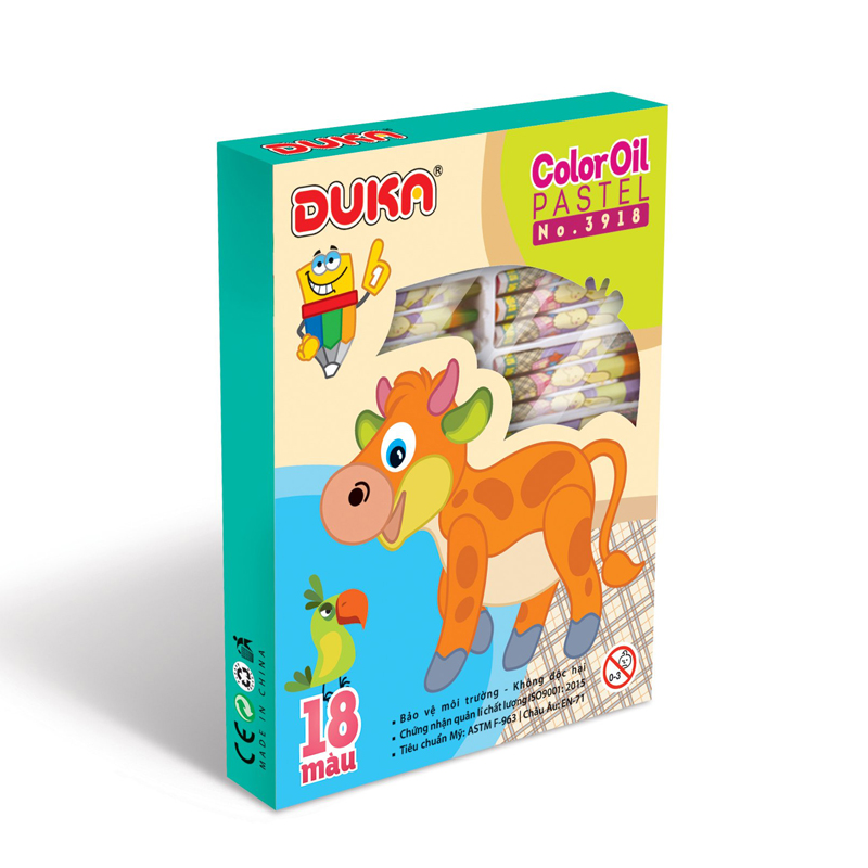 Vẽ tranh, tô màu luôn là hoạt động được các bé từ 3 tuổi trở lên yêu thích, đồng thời thông qua đó bé sẽ phát triển trí tưởng tượng, khả năng phối hợp màu sắc tốt hơn. Với chất liệu an toàn, đạt kiểm định chứng nhận, bút sáp dầu 18 màu Duka No.3918 (hộp giấy) sẽ là một trong những lựa chọn của bố mẹ khi chọn mua đồ dùng học tập cho bé.