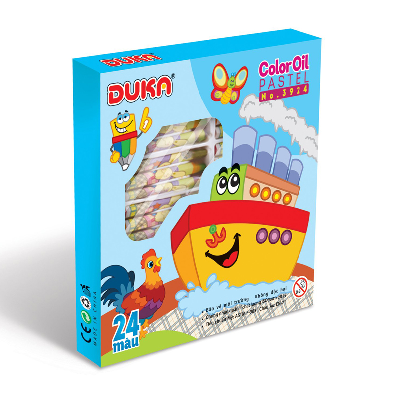 Bút sáp dầu 24 màu Duka No.3924 (hộp giấy) với số lượng màu sắc nhiều nên bé có thể thỏa sức tô vẽ, thể hiện màu sắc theo trí tưởng tượng của mình. Sản phẩm được đóng trong hộp giấy, thích hợp làm quà tặng cho các bé từ 3 tuổi nhân dịp vào năm học mới, sinh nhật, tết thiếu nhi...