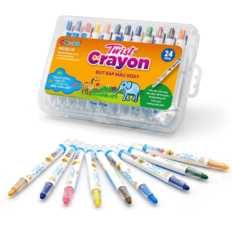 Bút sáp màu xoay Chicko 24 màu với chất liệu sáp an toàn