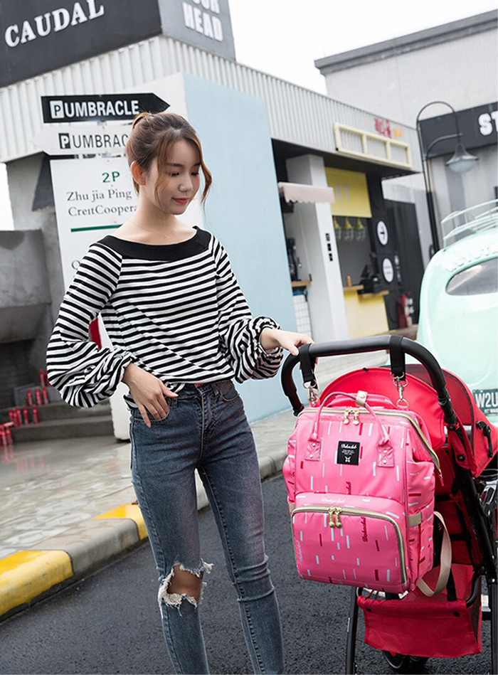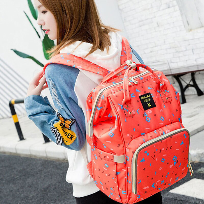 - Balo được in với họa tiết và màu sắc trẻ trung phù hợp cho các bà mẹ trẻ hiện đại