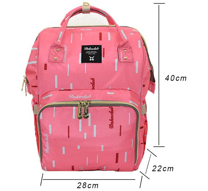 Balo đựng đồ cho mẹ bé Dokoclub (in họa tiết) với thiết kế trẻ trung để mẹ mang theo đồ cho bé khi đi du lịch, đi dạo, đưa bé đi tiêm. Sản phẩm được may từ chất liệu vải Polyester, không thấm nước, bền chắc, kích thước đủ rộng để mẹ có thể mang theo bình sữa, tã bỉm, quần áo, khăn ướt...