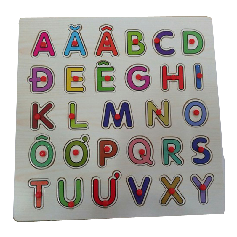 Bảng chữ cái Tiếng Việt có núm BA120 là món đồ chơi mang tính giáo dục và trí tuệ cho bé từ 3 tuổi trở lên. Bảng gồm 29 chữ cái tiếng việt, viết in hoa có thiết kế núm gỗ để bé dễ dàng nhấc ra khỏi bảng, giúp bé làm quen với mặt chữ tiếng việt ngay từ bé.