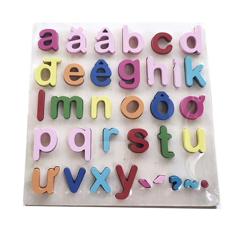 - Bảng số gỗ gồm các chữ cái Tiếng Việt từ A tới Y, viết theo phong cách viết in thường, màu sắc khác nhau.