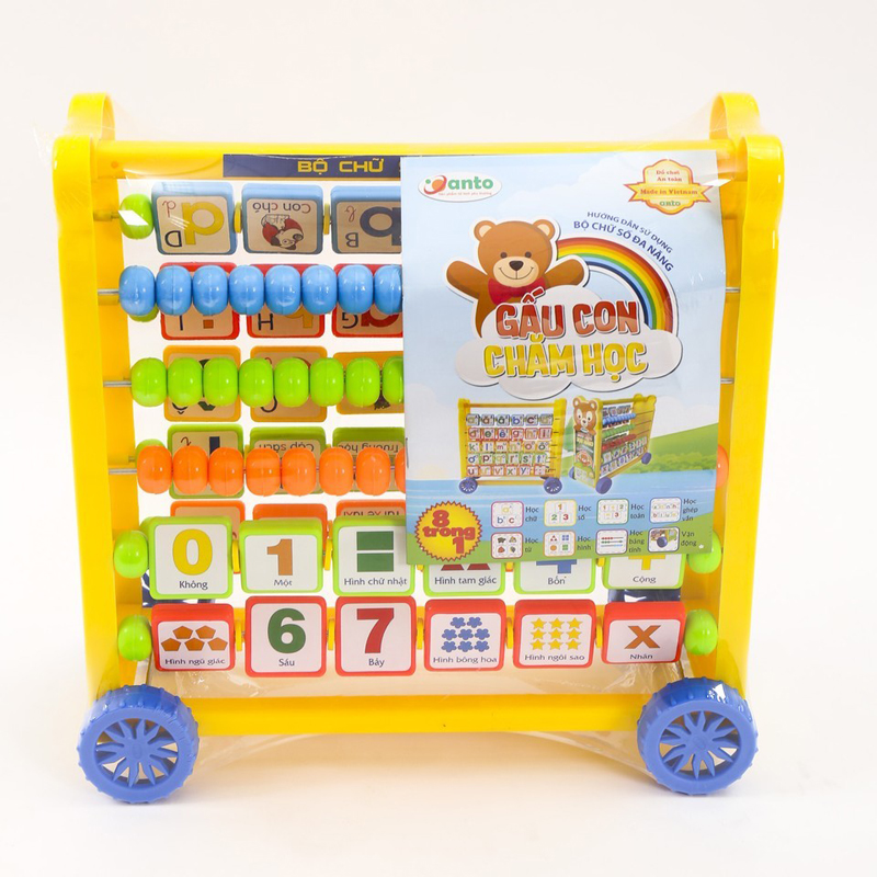 Bảng đa năng Anto98 - Gấu con chăm học là đồ chơi giáo dục dành cho bé từ 3 tuổi trở lên. Sản phẩm với thiết kế đa năng giúp bé học chữ, học số, học làm toán, ghép vần, học từ, học hình, học bảng tính, học vận động. Đặc biệt, bảng có thiết kế bánh xe, giúp bé dễ dàng di chuyển mà không phải bê vác.