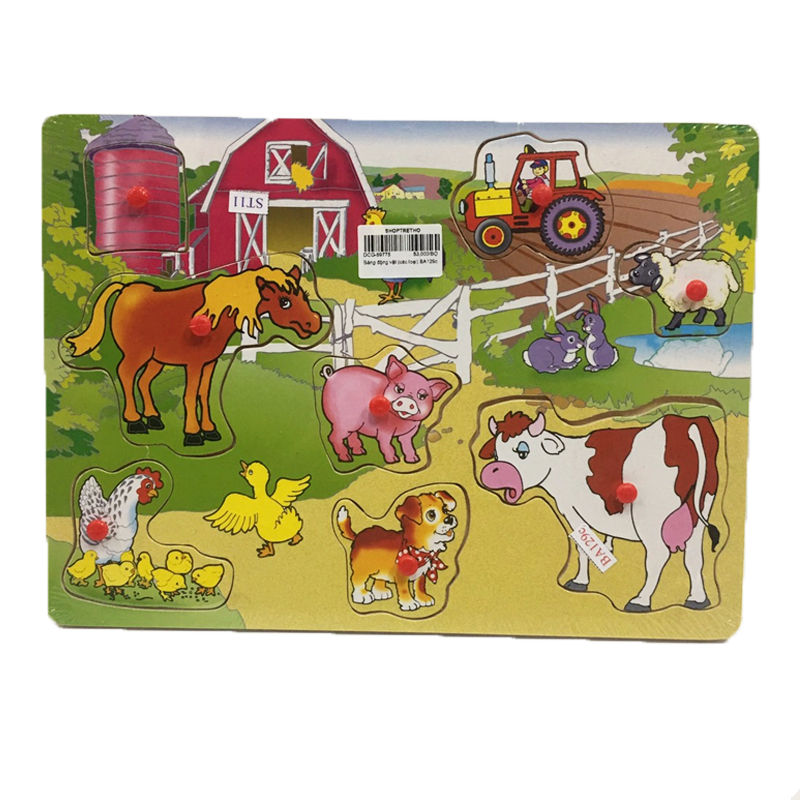 Bảng gỗ động vật nông trại BA129c tái hiện lại bức tranh của trang trại đồng quê với hình ảnh quen thuộc của các con vật như: vịt, heo, cún con, bác nông dân...Mỗi miếng ghép đều có núm để nhấc ra dễ dàng. Đồ chơi không chỉ mang đến cho bé những giờ phút vui chơi thú vị, mà còn giúp bé rèn tính kiên trì và phát triển tư duy logic.