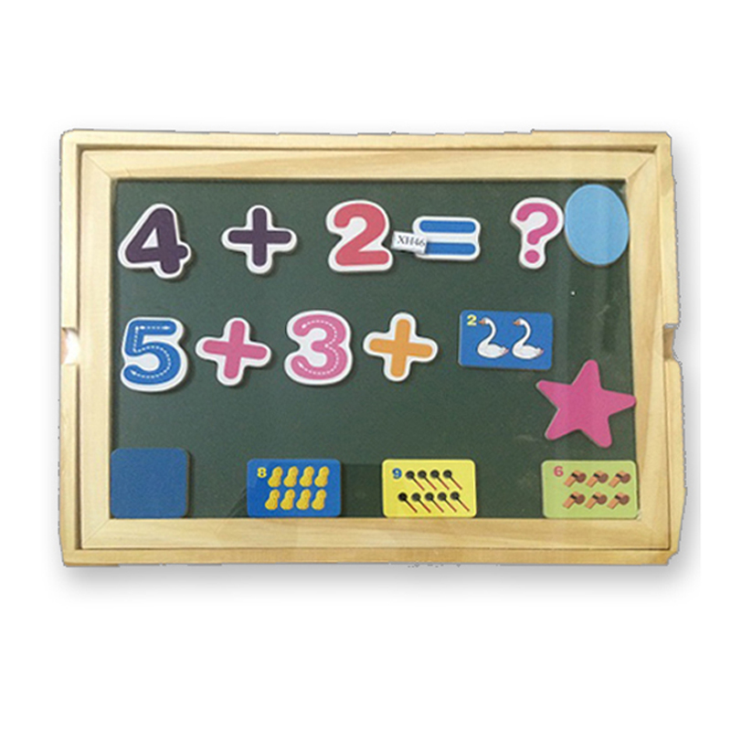 - Một mặt bảng đen từ tính để đính bộ số, hình khối có gắn nam châm cho con thỏa sức tìm tòi, học số ... Một mặt là bảng trắng có thể viết được bút dạ lên giúp bạn có thể dạy con được theo nhiều cách.