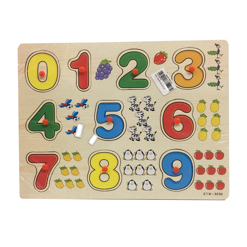 Bảng số với hình minh họa, các số có núm nên bé nhấc ra dễ dàng