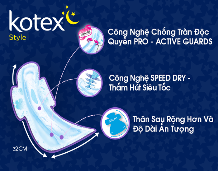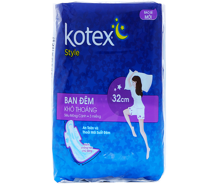 Băng vệ sinh ban đêm Kotex Style siêu mỏng có cánh 32cm (3 miếng) được thiết kế đặc biệt cho bạn sự an toàn và thoải mái suốt đêm để bạn không còn lo lắng về sự cố tràn băng và tận hưởng một giấc ngủ thoải mái trọn vẹn.