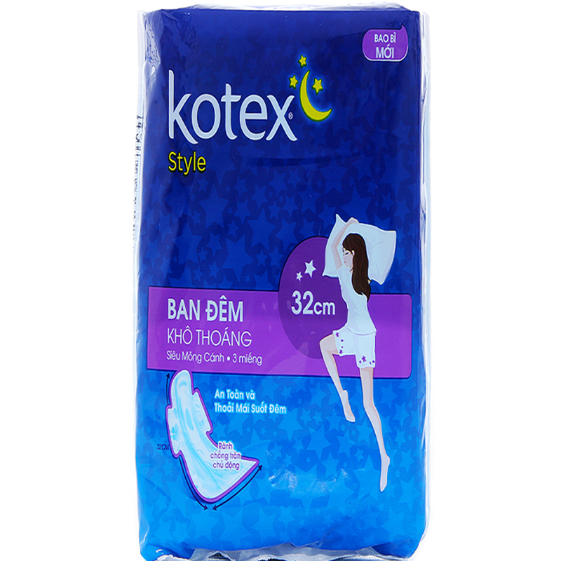 Băng vệ sinh ban đêm Kotex Style siêu mỏng có cánh 32cm (3 miếng)