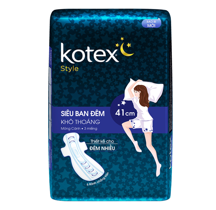 Băng vệ sinh ban đêm Kotex Style siêu mỏng có cánh 41cm(3 miếng)
