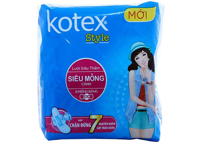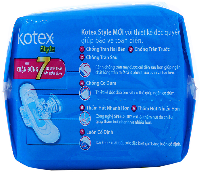 Băng vệ sinh Kotex Style lưới siêu thấm siêu mỏng cánh 8 miếng có thiết kế độc quyền, bảo vệ toàn diện nhờ rãnh chống tràn được cải tiến sâu hơn giúp ngăn chất lỏng tràn ra ở cả 3 phía: trước, sau và hai bên.