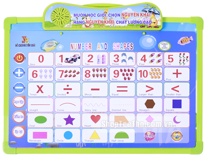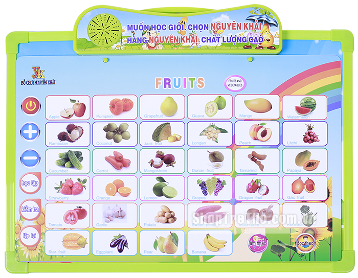 Bao gồm các chủ đề: phương tiện giao thông, hoa quả, toán học, nghề nghiệp, động vật. Tất cả các chủ đề đều được tích hợp ngôn ngữ tiếng Anh và tiếng Việt để bé lựa chọn. Với hình ảnh được thiết kế sinh động, âm thanh to, rõ ràng, loa ngoài có thể điều chỉnh âm lượng giúp bé vui chơi và học tập được dễ dàng hơn trước.