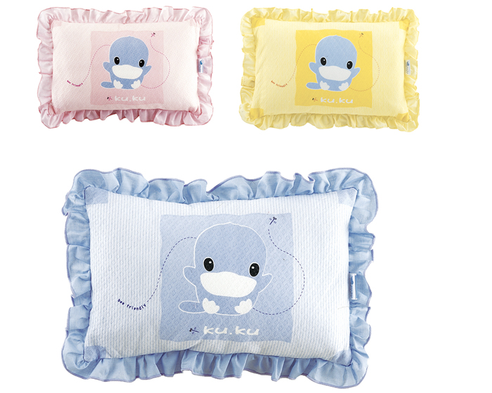- Gối cũng được in hình thú mỏ vịt Kuku đang vẫy tay chào thật xinh xắn trên nền màu hồng, vàng và xanh đẹp mắt.
