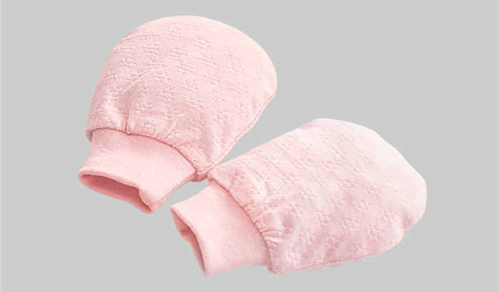- Bao tay còn giúp bé không tự cào xước mặt khi mẹ chưa thể cắt móng tay cho bé do tay bé còn quá nhỏ và non mềm.
