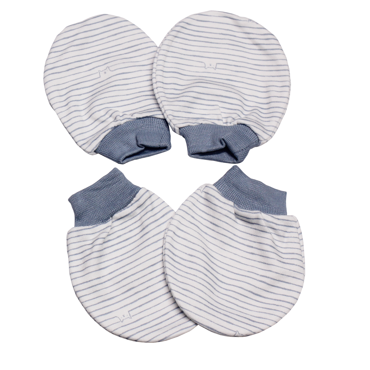 - Bao tay sơ sinh với thiết kế bo co giãn, giúp giữ ấm đồng thời tránh việc bé đưa tay cào xước mặt