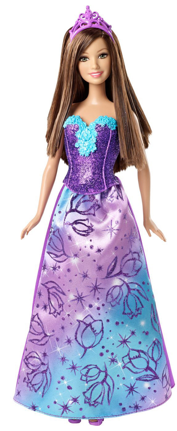 Công chúa Barbie khoác lên mình một bộ váy lộng lẫy với giày cao gót, vương miện,...