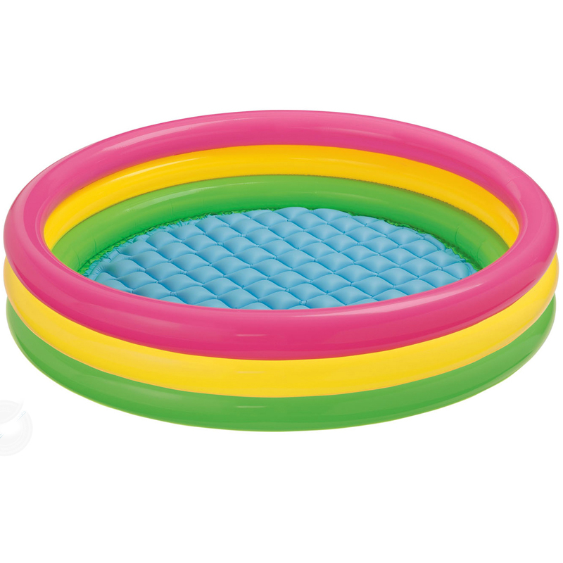 Bể bơi phao 3 tầng Intex 57422 sắc màu sau khi bơm có kích thước đường kính 1m47, Cao 33 cm. Thành bể gồm 3 tầng 3 màu khác nhau với 3 van khí riêng biệt. Đáy bể bơm hơi êm thoải mái khi sử dụng. Bể phao đa năng có thể dùng như bồn tắm hay thả bóng vào chơi như nhà bóng.