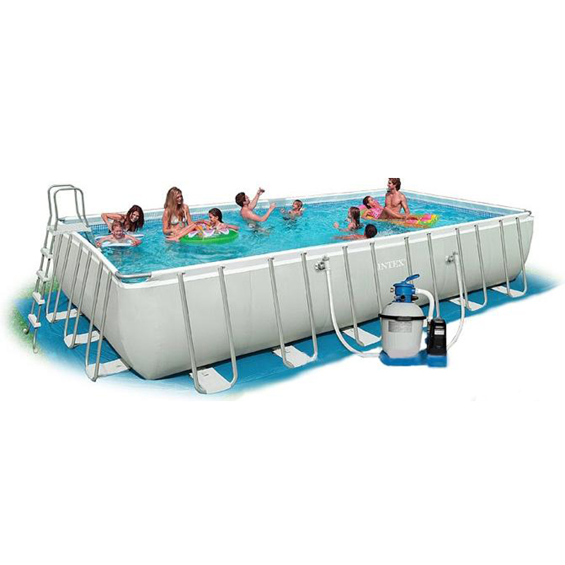 Bể bơi hình chữ nhật khung kim loại siêu lớn với kích thước dài 549cm rộng 274cm cao 132cm (18 ft x 9 ft x 52 in) bao gồm Thang, vải mặt đất, bạt che bể, bộ bảo trì bảo vệ xung quanh