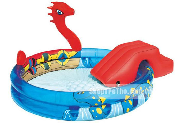 - Bể phao cầu trượt con rắn 53033 có 2 tầng họa tiết đẹp mắt, thích hợp cho cả bé trai và bé gái.
